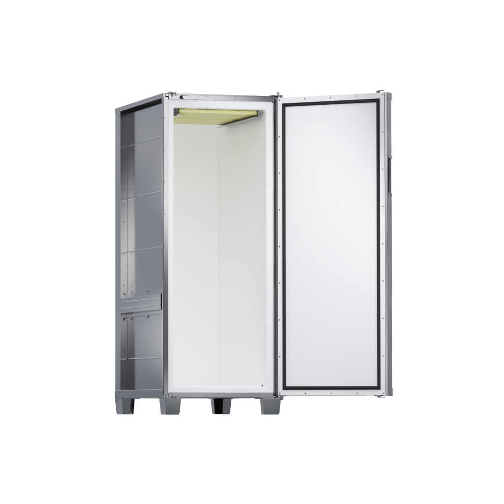 A key advantage is the use of a corrosion-resistant steel shell instead of a simple plastic shell, which greatly increases resistance in everyday logistics. In addition, the integrated vacuum panels show significantly less aging compared to conventional PU foam, which means that the insulation performance remains stable over many years. Since the design deliberately avoids welding or bonding processes, all main components can be dismantled and easily replaced individually if necessary.