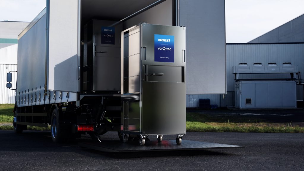 Leipheim / Würzburg, 18. Februar 2026. Für den Transport empfindlicher Frische- und Tiefkühlware präsentieren va-Q-tec, Pionier hocheffizienter Vakuumdämmtechnologie, und Wanzl, namhafter Hersteller hochwertiger Transport- und Logistiklösungen für den Handel, erstmals den gemeinsam entwickelten Thermo Trolley. Der hochformatige Behälter ermöglicht den Transport gefrorener und gekühlter Lebensmittel ohne Kühlfahrzeuge, Trockeneis oder Kühlakkus. Dank der Vakuumisolierung bleibt die Temperatur im Inneren rein passiv, das heißt ohne Stromzufuhr, bis zu zwölf Stunden stabil. Damit wird der gesamte Logistikprozess von der Kommissionierung über die Verteilzentren bis zur Auslieferung und Bestückung der Kühlregale und Tiefkühltruhen einfacher, schlanker und kostengünstiger.